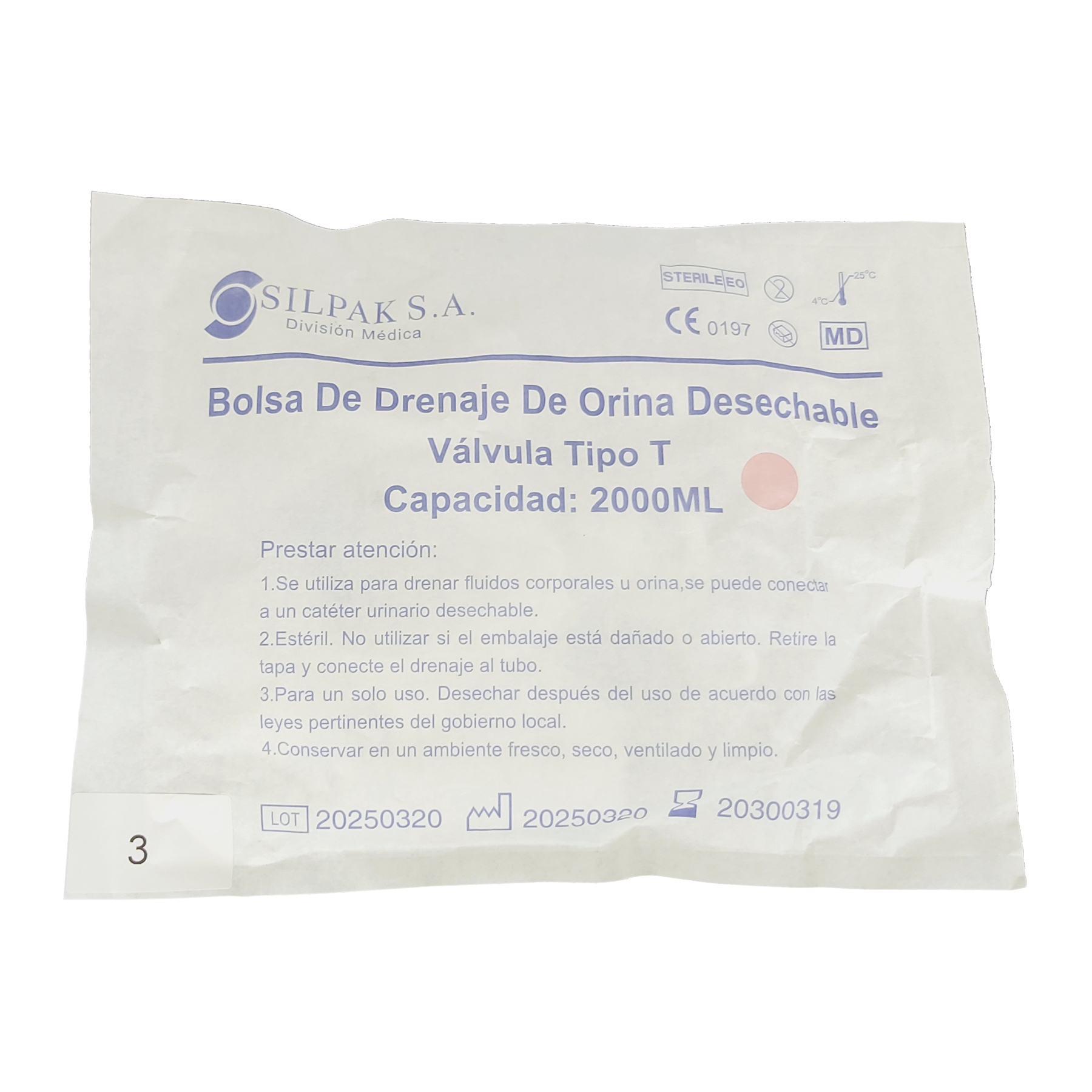 Bolsa de drenaje de orina valvula tipo T